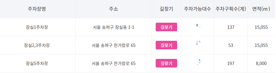 - 주차장 수: 총 3개 (1·2·3주차장)
